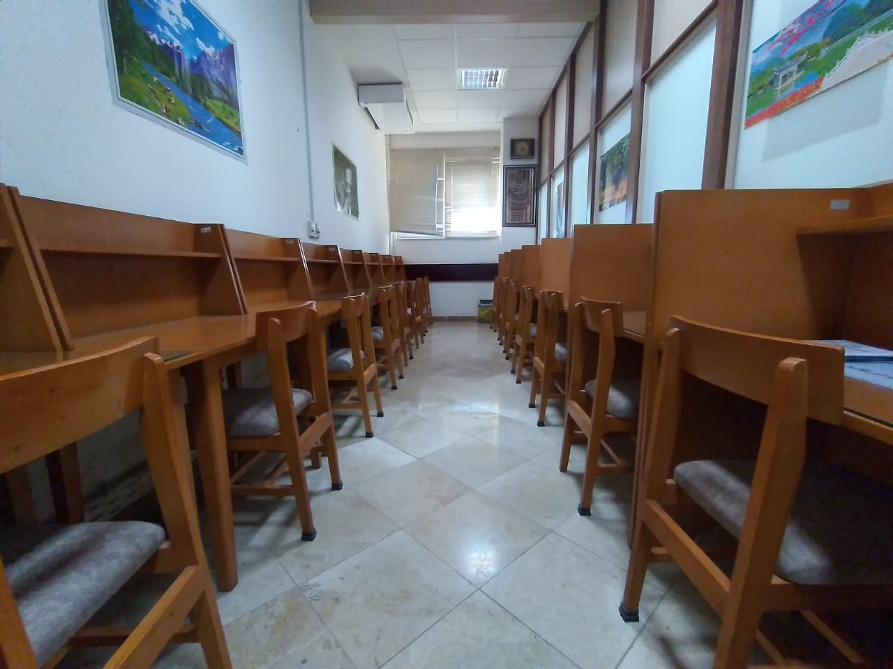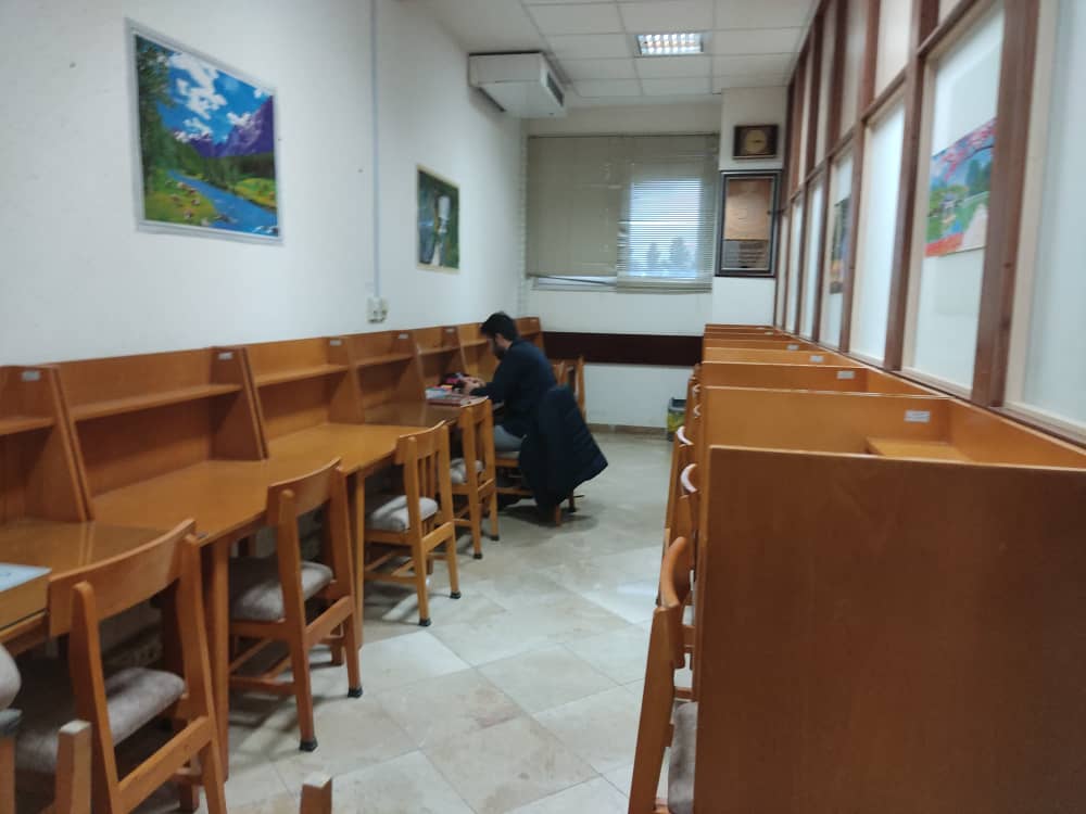 جهت افزایش کاربری و راحتی استفاده از سالن مطالعه کتابخانه ، کلیه صندلی های سالن مطالعه کتابخانه رویه کوبی گردید. لازم به ذکر است برای رفع خستگی روحی و همچنین جسمی اعضای محترم ، سالن مطالعه پوسترهایی از طبیعت مزین گردید و همچنین با عنایت معاون اداری و مالی دانشکده مقرر گردید در دو مرحله از استفاده کنندگان سالن مطالعه با چای پذیرایی گردد.