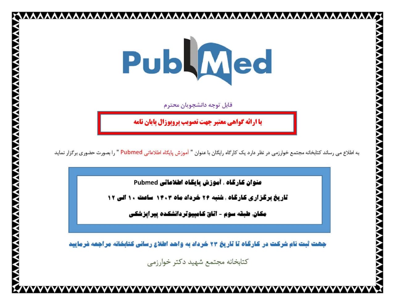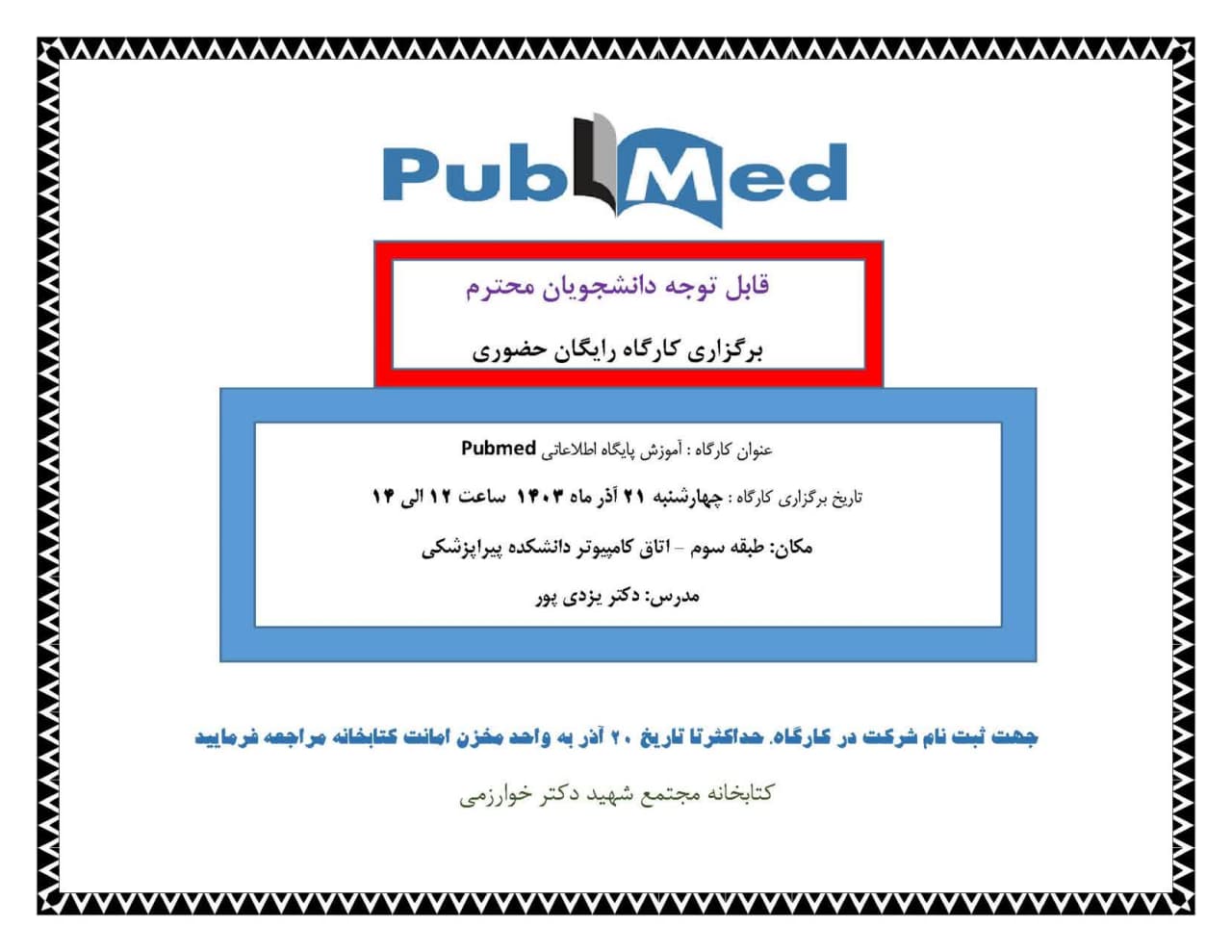 برگزاری کارگاه آموزش پایگاه اطلاعاتی Pubmed - چهارشنبه 21 آذر 1403