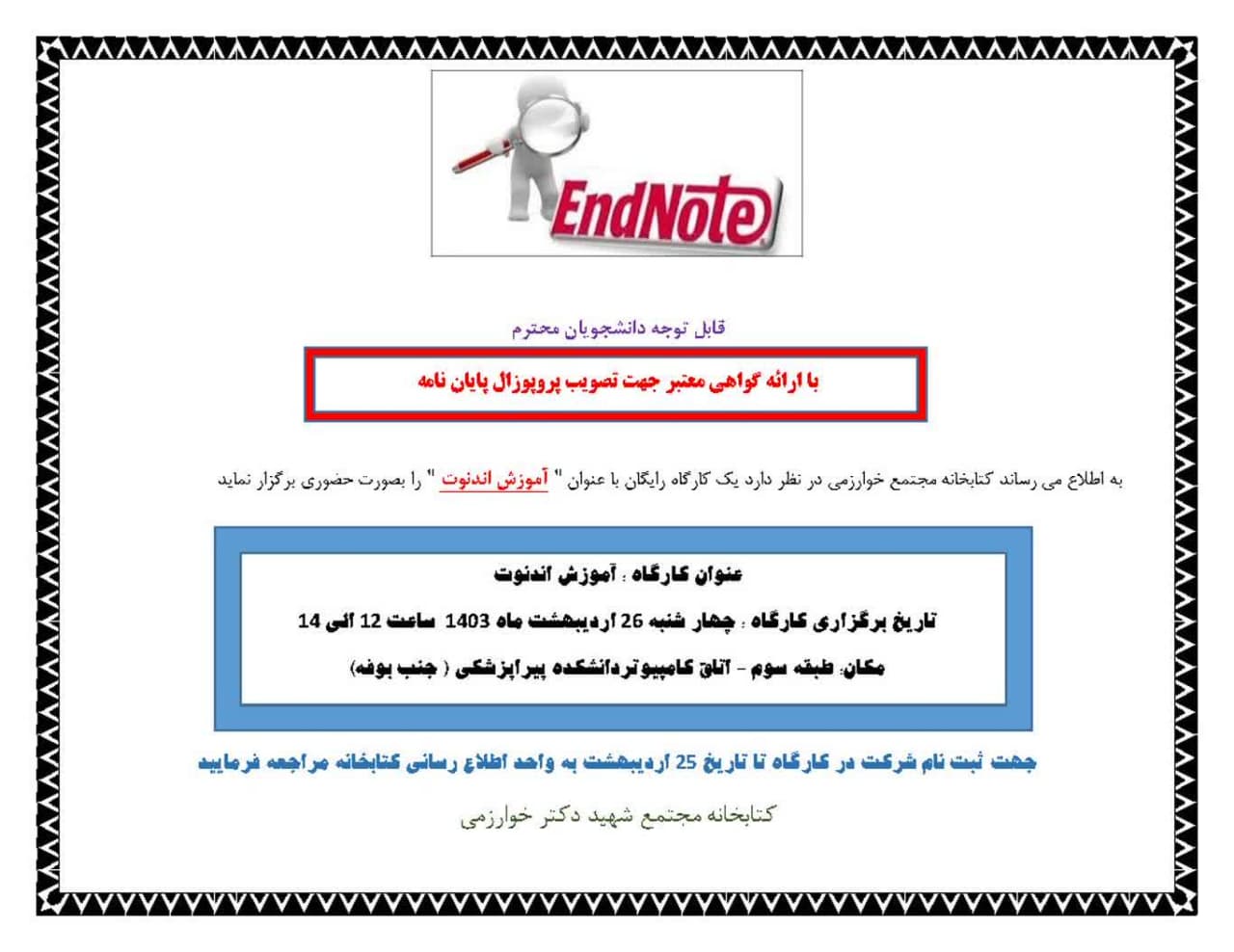 برگزاری کارگاه آموزش اندنوت - چهارشنبه ۲۶ اردیبهشت ۱۴۰۳