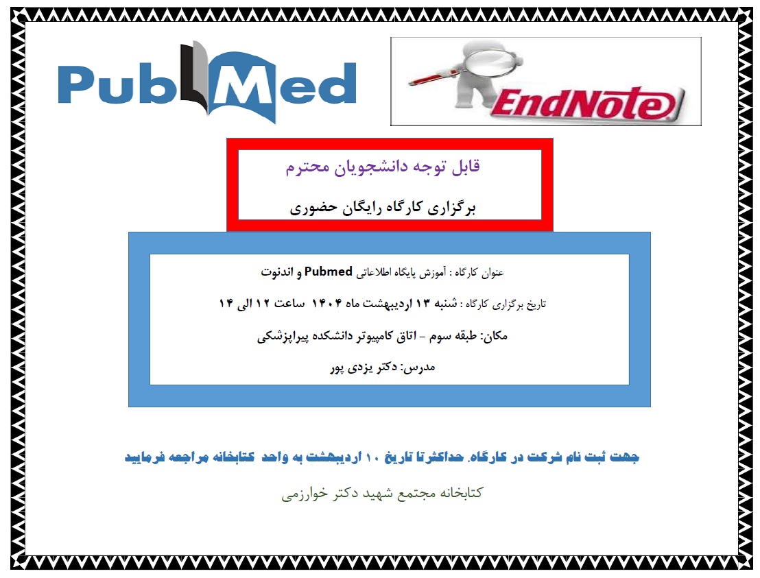 "کارگاه آشنایی با پایگاه اطلاعاتی Pubmed و اندنوت"